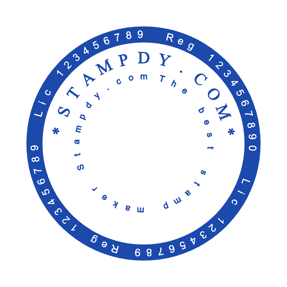 Round stamps are the most popular for company seals and personal monograms. On StampDy, just choose the round template, enter your text around the edges, pick a center logo or icon, and adjust font size, spacing, and alignment. The online stamp maker gives you real-time previews as you customize.